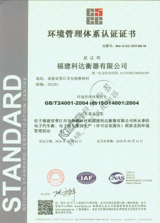 科達(dá)地磅通過環(huán)境管理體系認(rèn)證